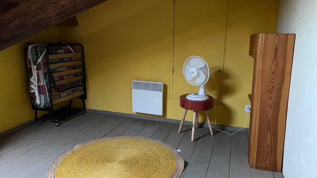 – Une mezzanine avec deux lits en 90 et un lit d’appoint pliant (accès par une échelle de meunier).